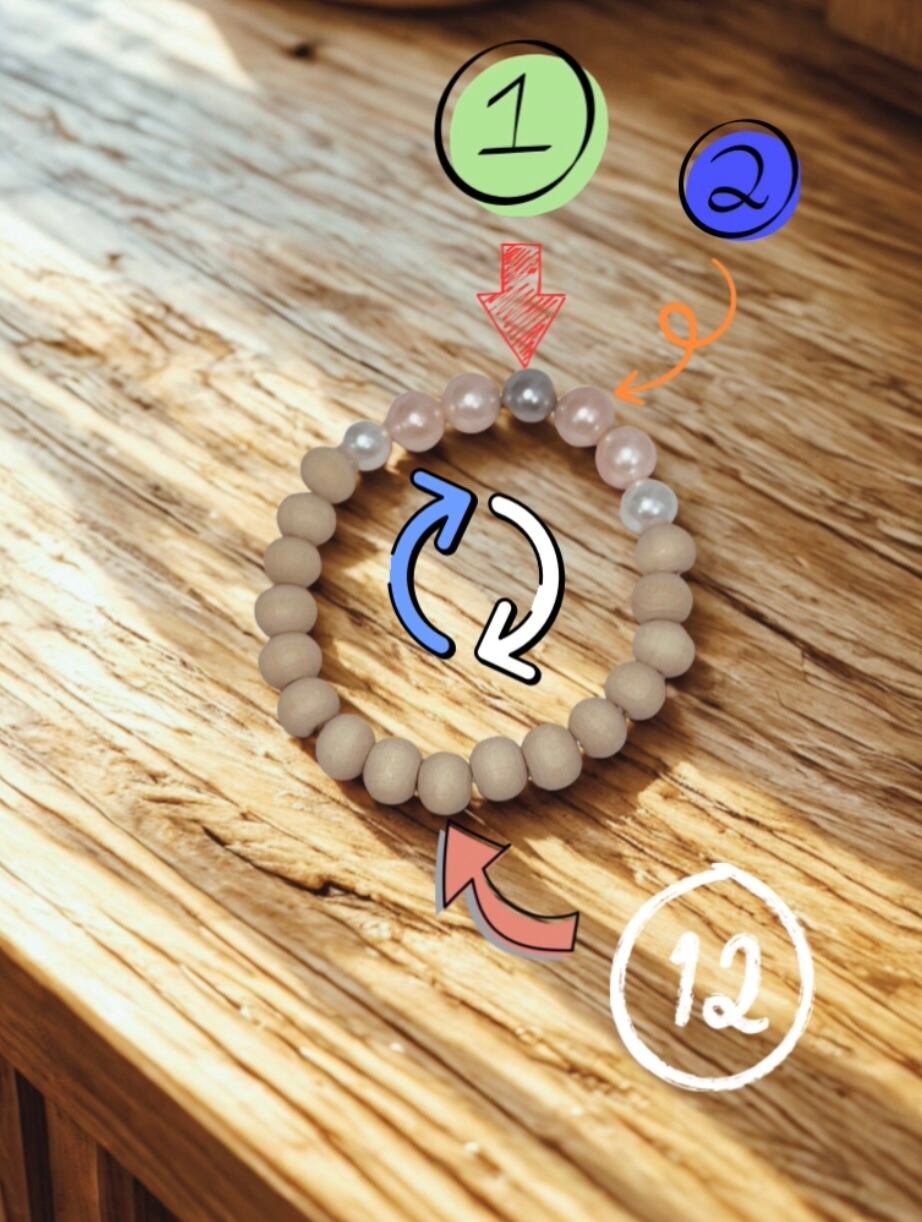 間にラインナバホパールビーズの7mmを6粒入れアクセントにし、 ナバホパールビーズ5mmを6粒、シルバ−925ビーズ6粒を使用し、重厚感を出させていただきました