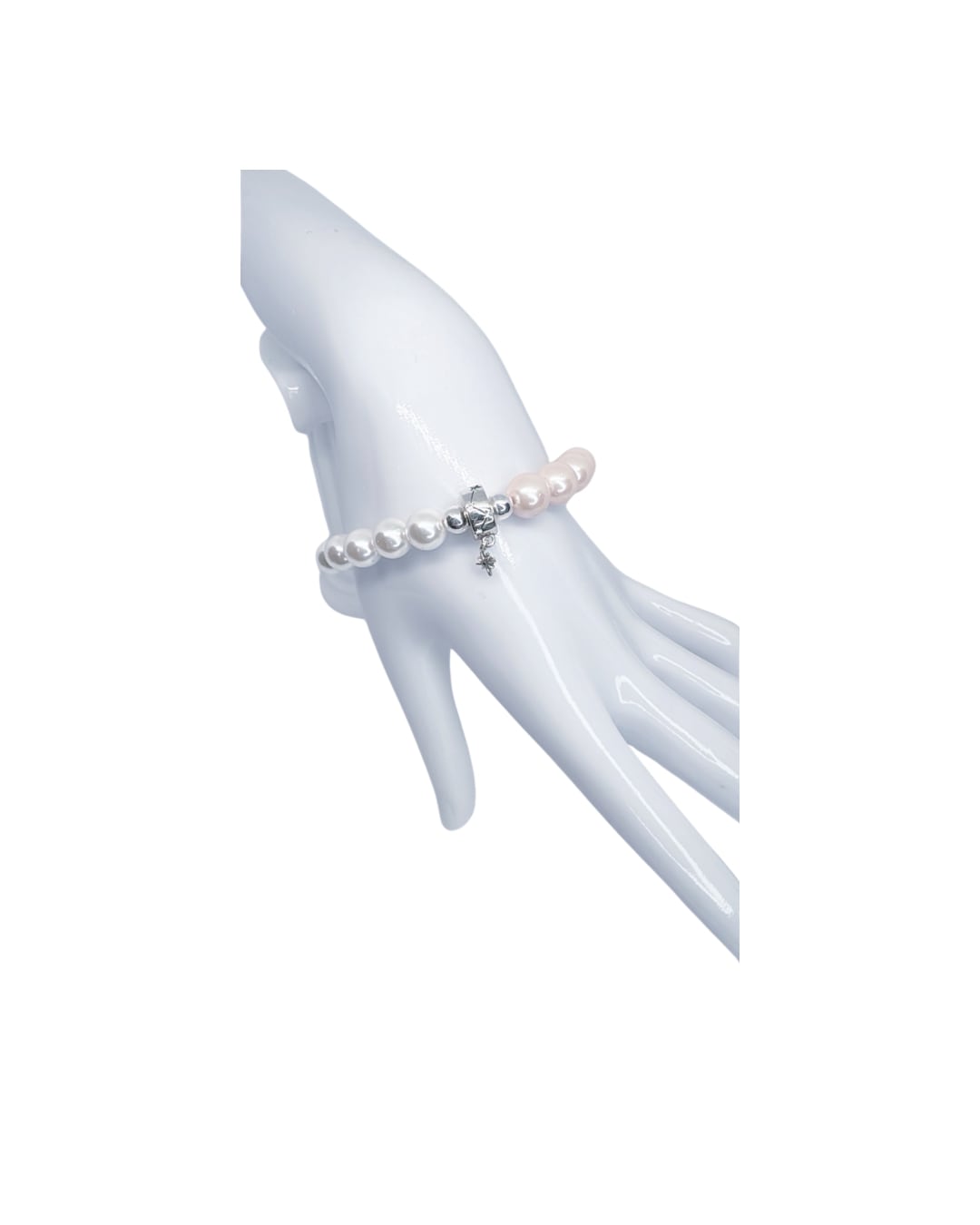清楚でかわいいパールに星座と星のチャームでさらに可愛らしく作ってみました
